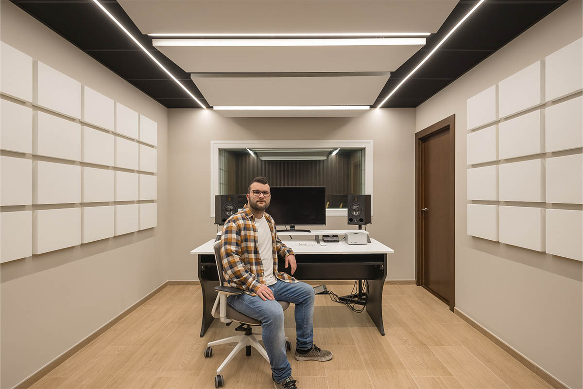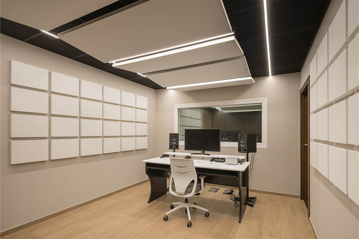 El estudio cuenta con dos espacios especializados: una sala de control y una sala de grabación, perfectamente acondicionadas para abordar cada proyecto con un nivel de detalle excepcional y ofrecer una experiencia de producción integral.